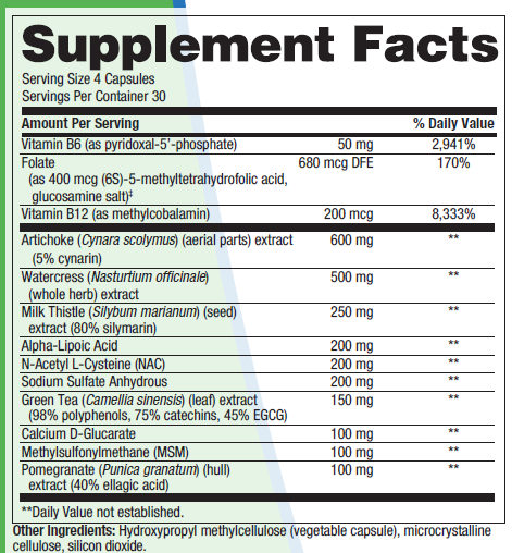 Ingredients like pomegranate extract, green tea catechins, and watercress glucosinolates help balance detox phases by supporting Phase II enzymes and modulating Phase I activity.*