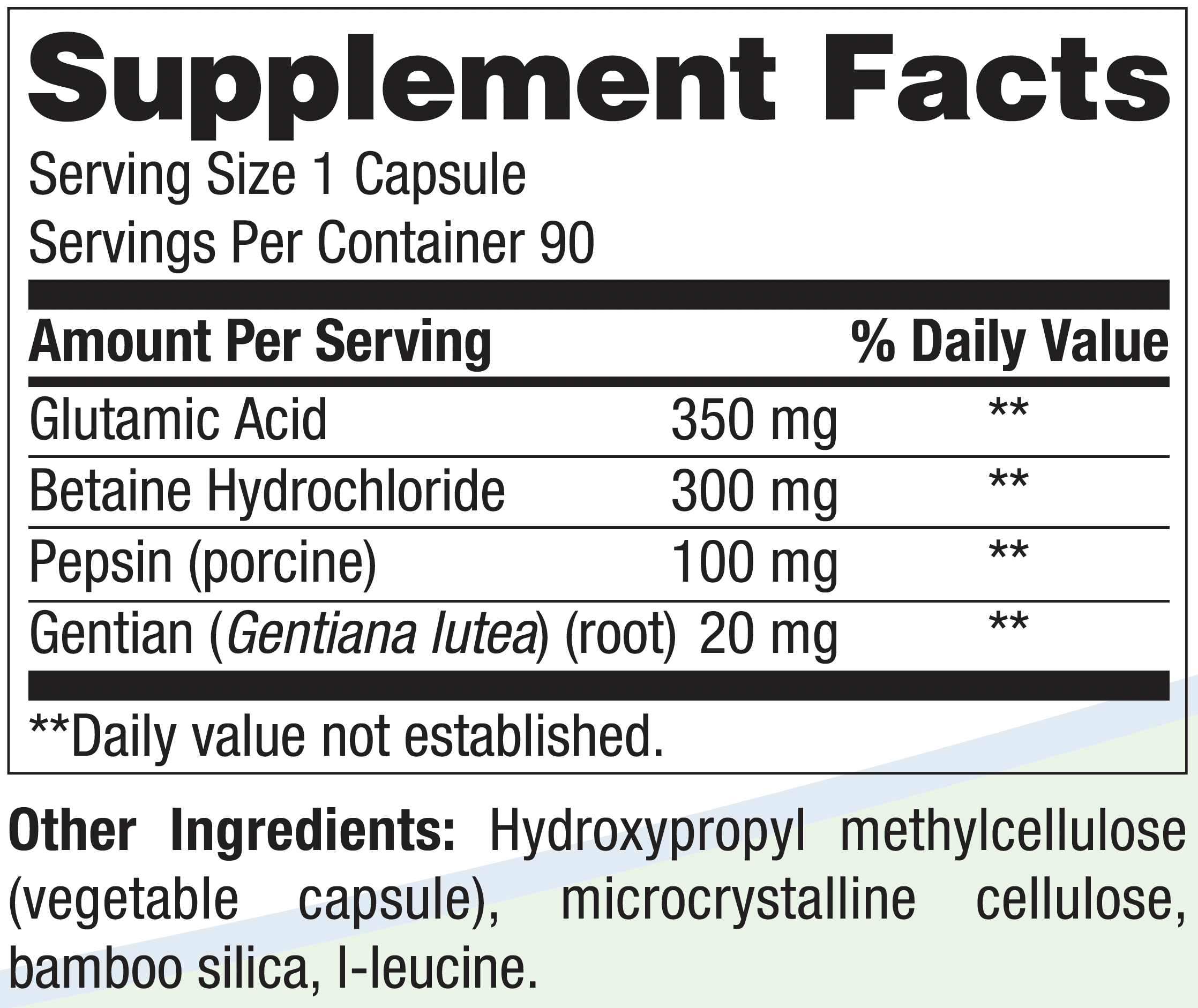 - Helps maintain healthy stomach acidity for proper protein digestion*
