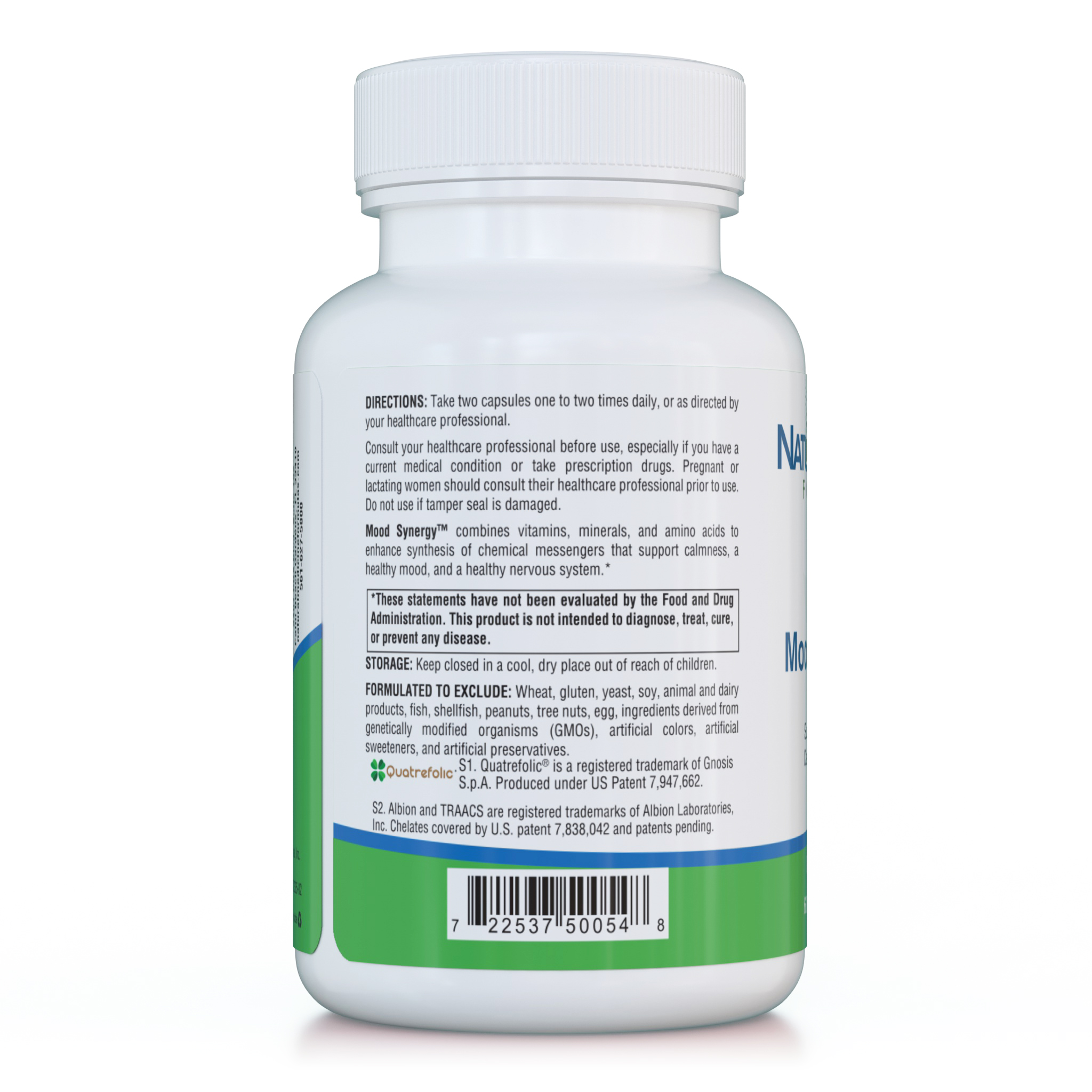 Vitamins, minerals, amino acids, and other nutrients are necessary for the synthesis of neurotransmitters, healthy nerve transmission, healthy brain chemistry, and normal muscle contraction/relaxation. Components of Mood Synergy™ address each of these areas.*