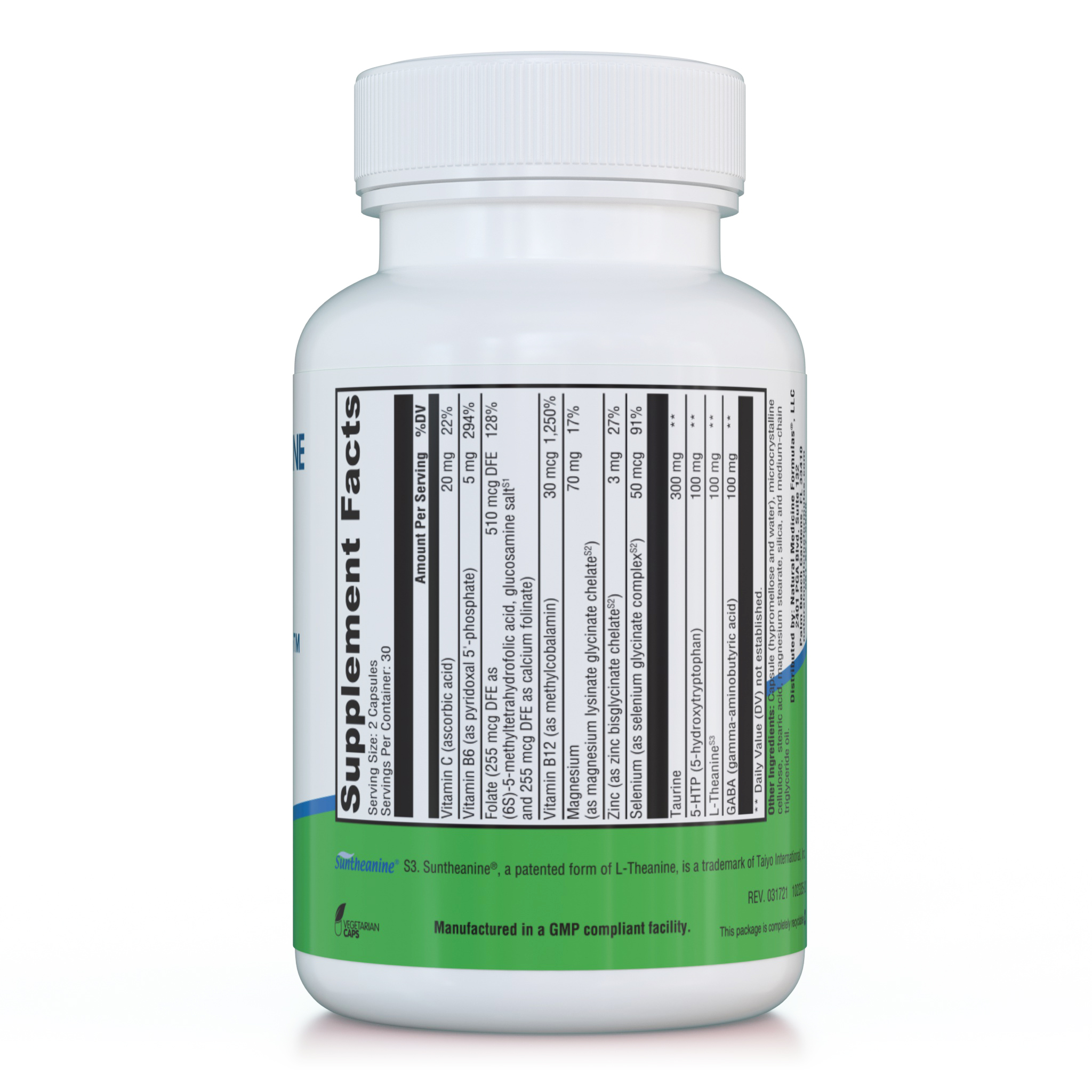 Magnesium is provided as Albion® TRAACS® glycinate chelate, a specific form demonstrated to support intraneuronal magnesium sufficiency.[3] As a cofactor for over 325 enzymes in the body, magnesium has a multitude of actions, including a calming effect on the nervous system and regulation of muscle contraction. Laboratory, animal, and epidemiological research suggests a link between magnesium sufficiency and a healthy mood and calm demeanor.*[4,5]